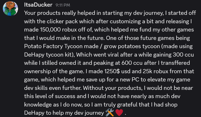 Don't want to make a game from scratch? We got you. ShopDeHapy offers a variety of game templates that you can publish within minutes. Each template is optimally scripted for you to make customizations with ease. If you ever need help, we offer free guidance in our discord server.
